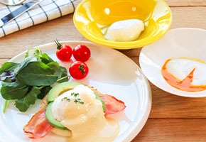 お鍋での調理が一般的なポーチドエッグも、温度や時間を調整することで、スチコンで美味しく仕上げることができます。とろける黄身となめらかな白身が美しいポーチドエッグを贅沢に使ったエッグベネディクトも掲載しております♪ ぜひ、お試しください★