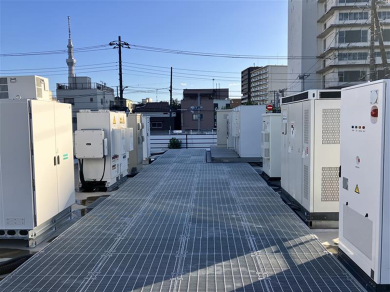 机上の評価だけではなく、自社施設に複数メーカーの蓄電池を並置し、蓄電池の機能確認や最適制御の評価を行っています。