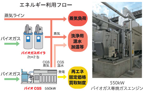 ・バイオガスボイラー、およびバイオガス専焼エンジンを用いたコジェネレーションシステムを導入していただきました。