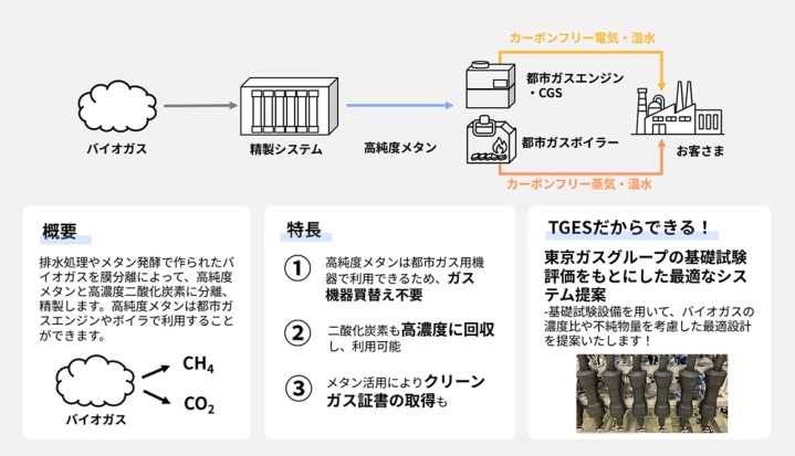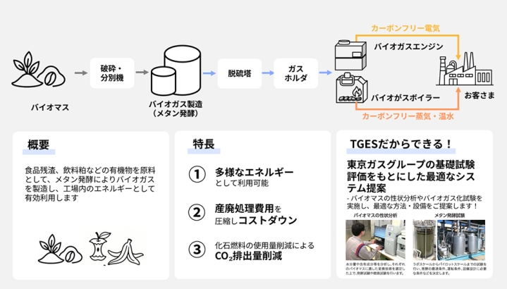 バイオガス精製設備の導入事例IGNITURE(イグニチャー)は、エネルギーの枠を超え、未来に向けて先進的で多様なソリューションを通じてお客さま課題の解決を目指す、東京ガス・TGESのソリューション事業ブランドです。