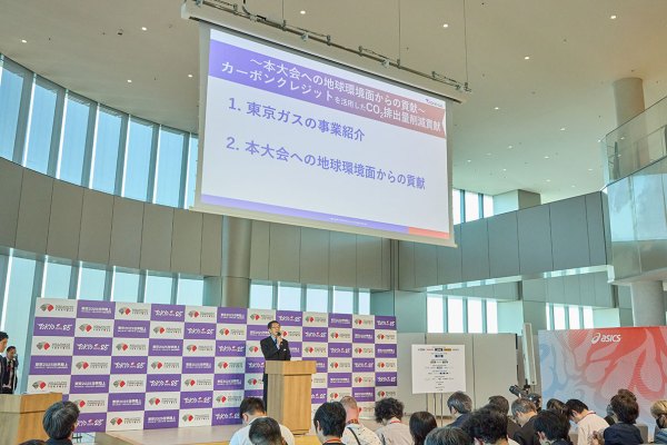 東京2025世界陸上 100 Days To Go!において、東京2025世界陸上競技選手権大会の電気公共サービス・ガス・ガス公共サービスカテゴリーの公式イベントサポーターである東京ガスは、CO2の排出量削減への貢献においても取り組むことを発表した。いつまでもスポーツを楽しめる、競い合える環境を守るためにも東京ガスはカーボンクレジットを活用していく。100日前の節目にふさわしい、熱気あふれるイベントとなった。