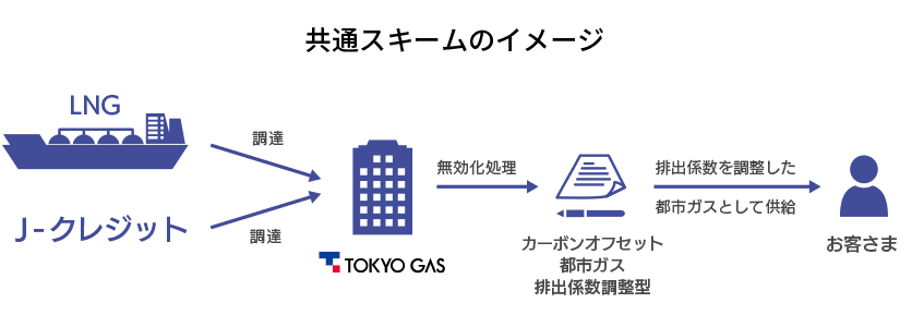 東京ガスが都市ガス由来CO2の無効化処理を行うことで、「温室効果ガス排出量算定・報告・公表制度」における「調整後排出係数」をゼロとした都市ガスをお客さまにお届けします。