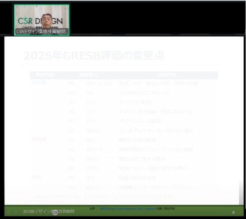 J社様(リート業界の企業様)「2026年のGRESB変更点まで言及していただき、大変勉強になりました。次回以降開催の予定がありましたら、是非参加させていただきたく存じます。」